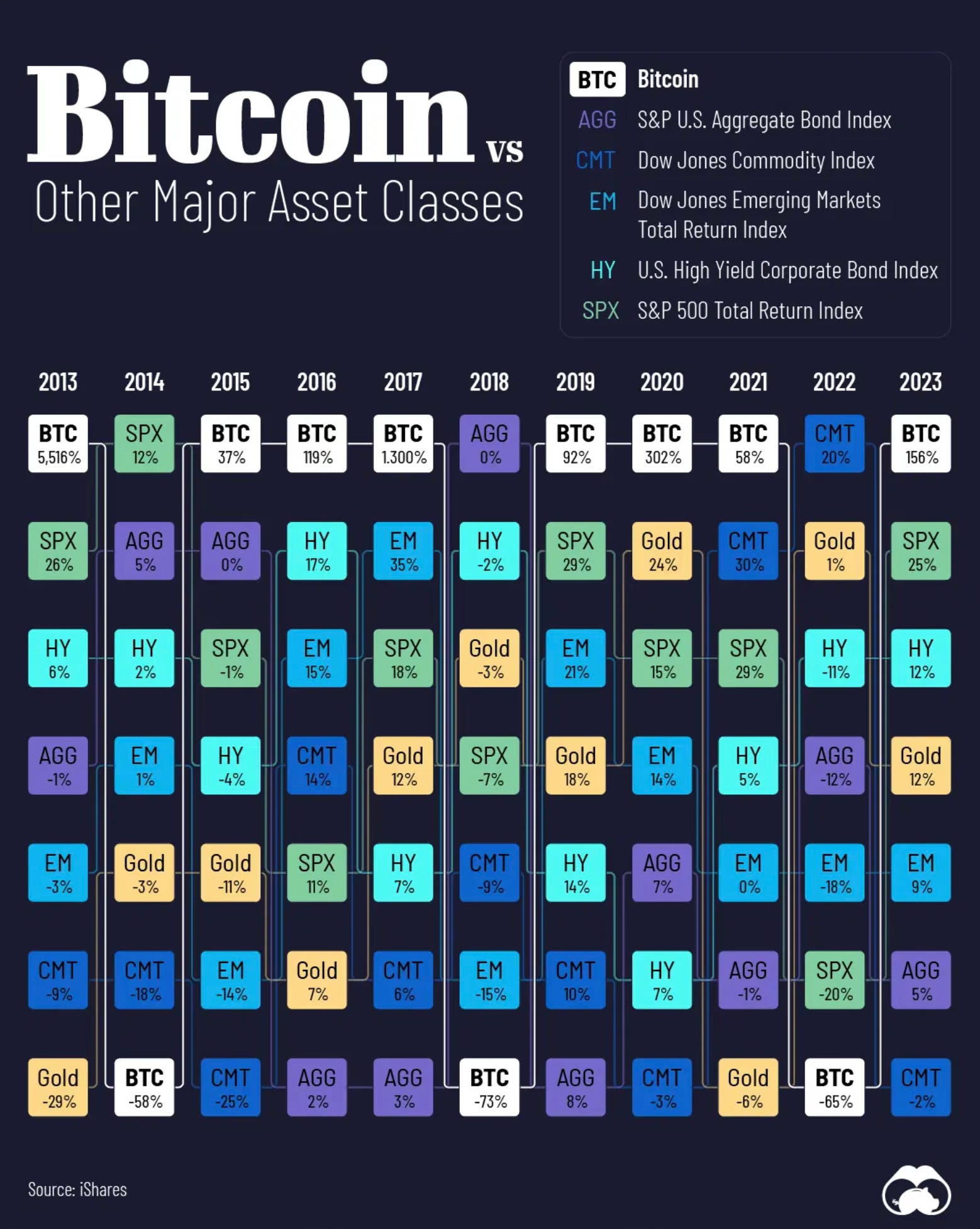 However, more recently a serious case can need to be made for Bitcoin. Although the great and late Charlie Munger called it "rat poison", Bitcoin has outperformed every asset class in 8 of the last 10 years.