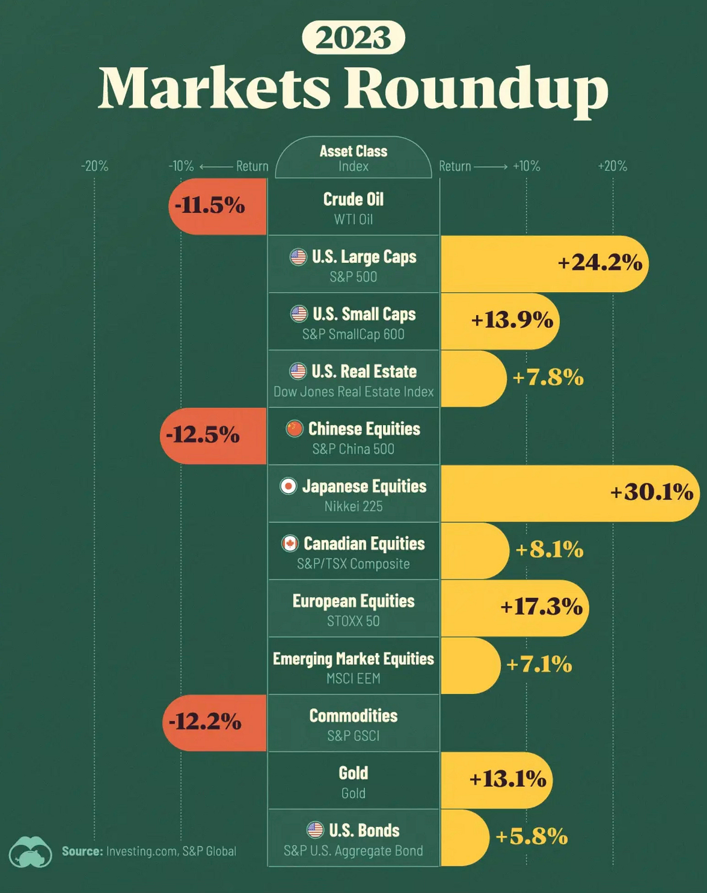 The Coffee Can Portfolio is premised on the idea that we can identify quality assets that will appreciate over time. Such assets include real estate, stocks, gold, silver, other commodities, bonds, and even cryptocurrency. Here are the best performing assets of 2023 (ex-crypto):