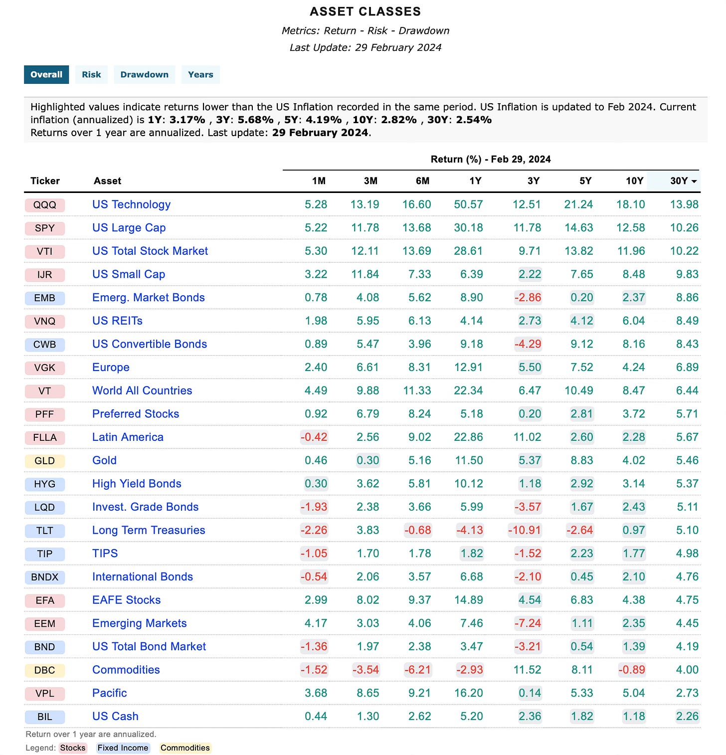 Stocks are my favourite asset class, as they tend to outperform over a long enough time horizon. US Technology and Large Cap Stocks in particular have led the way over the past 30 years.